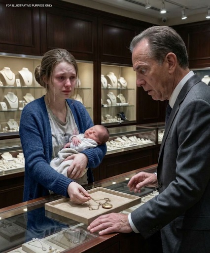 The jewelry store on Lexington Avenue was small but elegant—the kind of place I would never have entered. I walked in with swollen feet, tangled hair, and my sleeping son strapped to my chest. The owner, an older man in a dark suit, looked ready to dismiss me—until I placed the necklace on the glass counter.