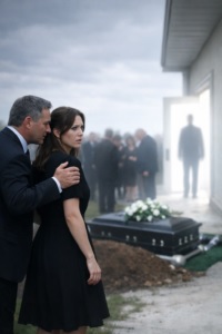 The cemetery slowly began to clear. Neighbors offered quiet hugs before leaving. Someone told my father they were “so sorry.” He nodded stiffly, like his neck barely moved. Ethan kept staring at the ground.