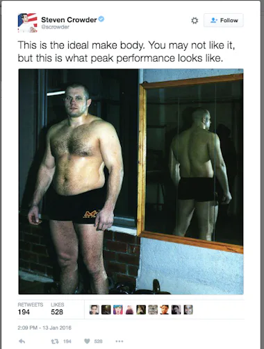 Crowder declared that this physique represented the “ideal male body,” accidentally typing “make” instead of “male” — a typo that only fueled the internet’s amusement. Though the original post had been sitting online for months, social media eventually revived it, and once it did, the floodgates opened.