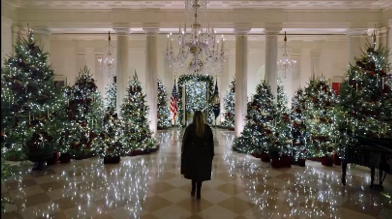 On Facebook, Trump posted a beautifully produced video showing herself strolling through the Grand Foyer as towering, brilliantly lit trees surrounded her. Set to soft holiday music, the clip highlights this year’s theme: “Home Is Where the Heart Is.”