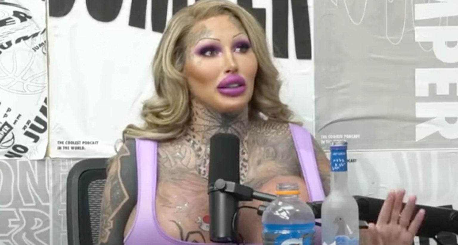 Mary underwent a staggering array of procedures: multiple nose jobs, brow lifts, liposuction, facial fillers, veneers, fat transfers, butt and breast implants—including Brazilian butt lifts—and extensive tattoos. Her breasts reportedly expanded to a 38J size using 5,000cc expanders. These were not subtle cosmetic adjustments but deliberate constructions of a hyper-feminized, visually extreme body.