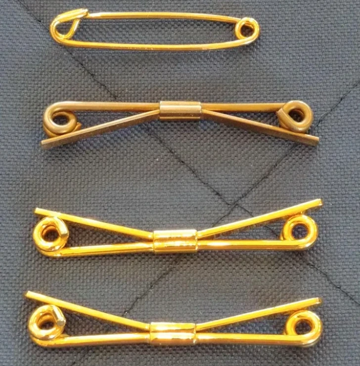 Metal pins that look like oversized safety pins? They’re decorative collar pins for shirts, adding a subtle touch of flair.