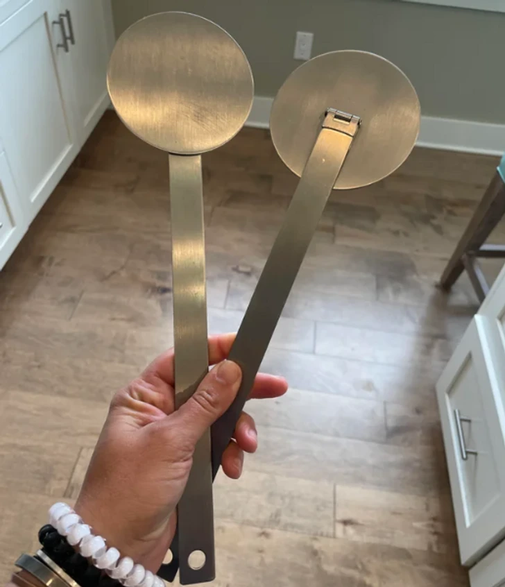 Two flat metal disks with long handles aren’t just decorative—they’re antique candle snuffers, used to extinguish flames safely.