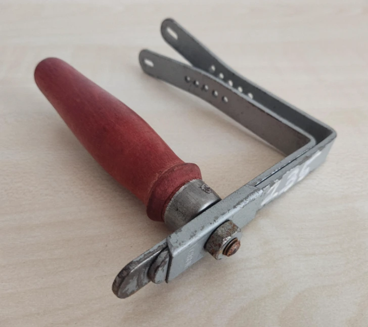 A wooden-handled tool with movable metal parts isn’t a puzzle—it’s a roller for creating decorative paint patterns on walls or furniture.