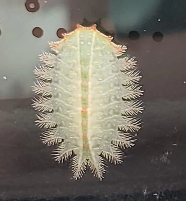 Spotted crawling on a window? That prickly creature is a crowned slug moth caterpillar; touching it can be painful.
