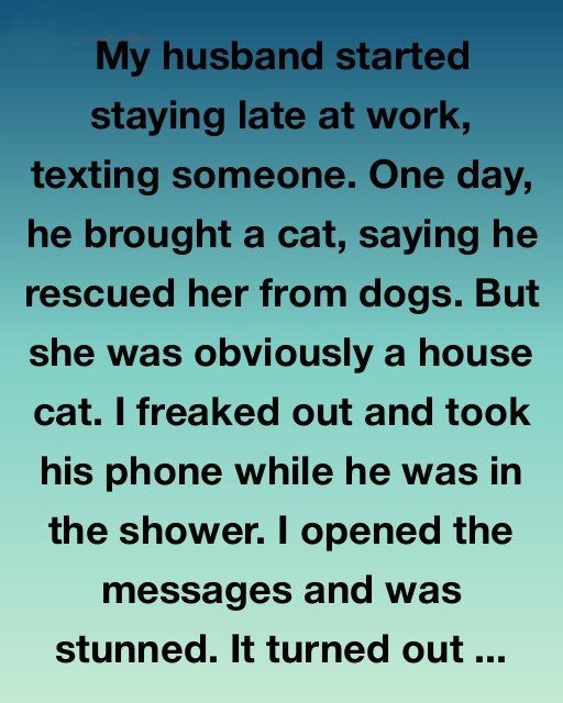 Lately, my husband had been staying late at work more often, and he seemed constantly attached to his phone. Then one day, he came home with a small, sleek cat, claiming he had rescued her from a group of stray dogs. Something about it didn’t feel right.