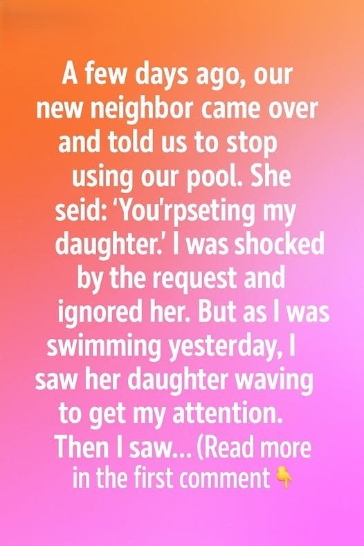 A few days ago, our new neighbor came over, her expression tight. “You need to stop using your pool. You’re upsetting my daughter,” she said.