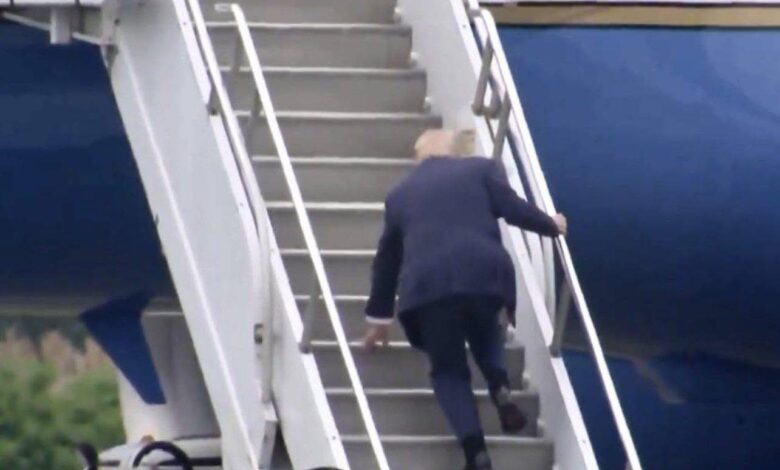 President Donald Trump experienced a minor stumble while ascending the stairs to board Air Force One in Morristown, New Jersey. Physically inconsequential, the incident nonetheless ignited a torrent of commentary across news outlets and social media platforms.
