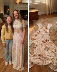 Later that night, the dress hung over a chair—patched, textured, transformed. It was no longer a symbol of delicate craftsmanship alone. It was proof that love can survive sabotage.