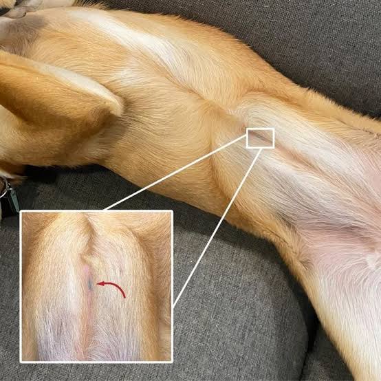 That small blue line is a permanent medical tattoo placed during spay or neuter surgery. Veterinarians typically add it while the dog is still under anesthesia, marking the skin near the incision area to indicate the procedure has already been performed. It’s not meant to be decorative, and it isn’t added later—it’s created during the surgery for one clear purpose: to prevent confusion for anyone who cares for the dog in the future.