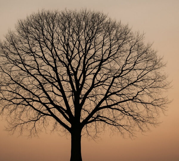 Some viewers focus first on vertical lines and branching forms, leading them to see a tree as the main structure in the image.
